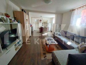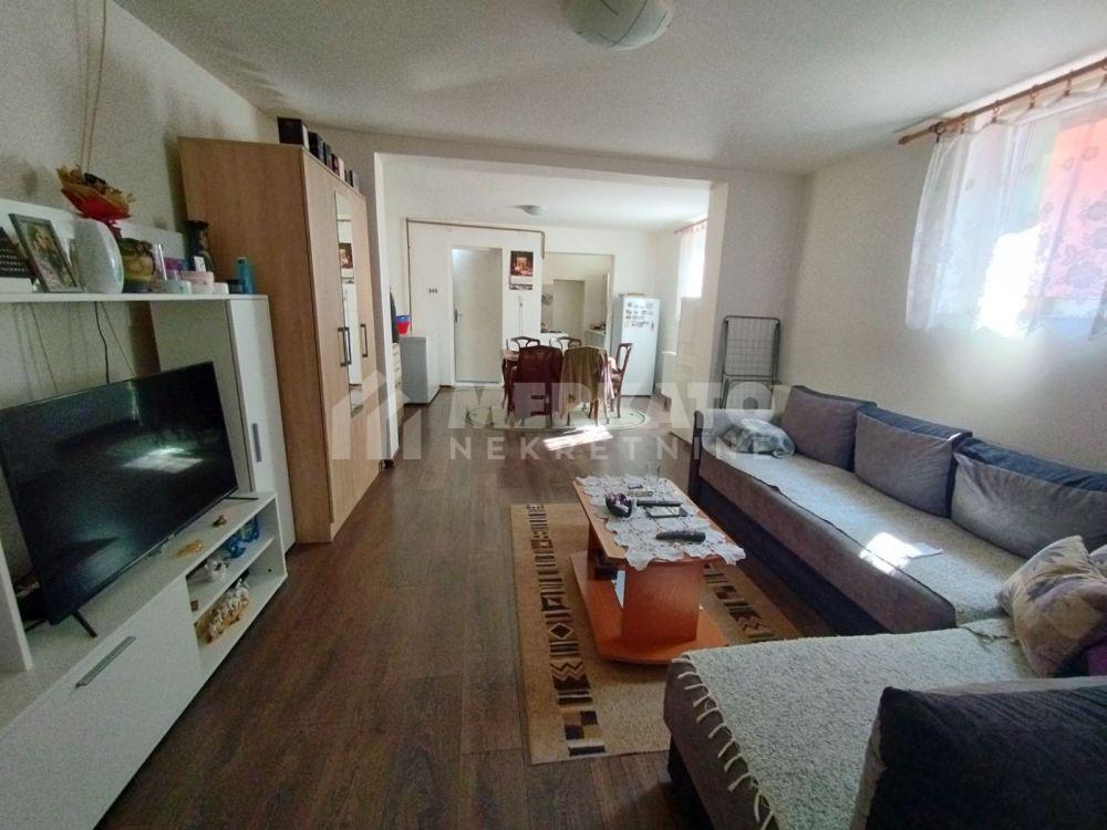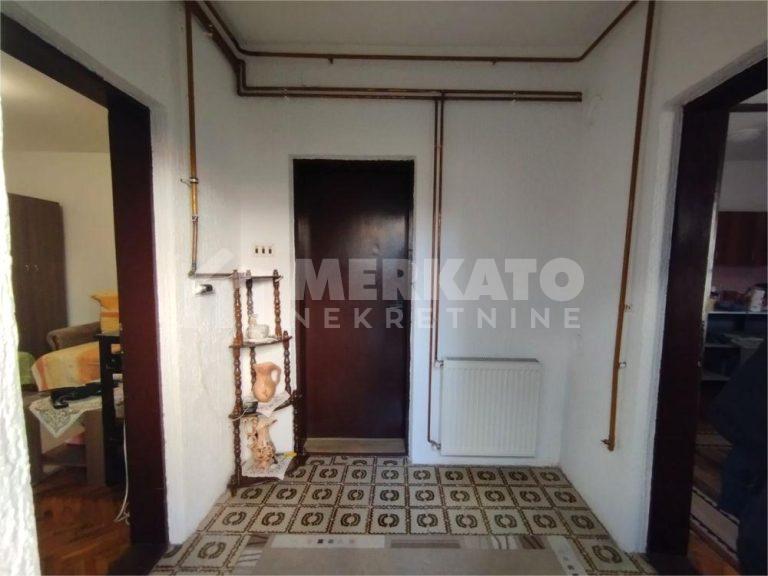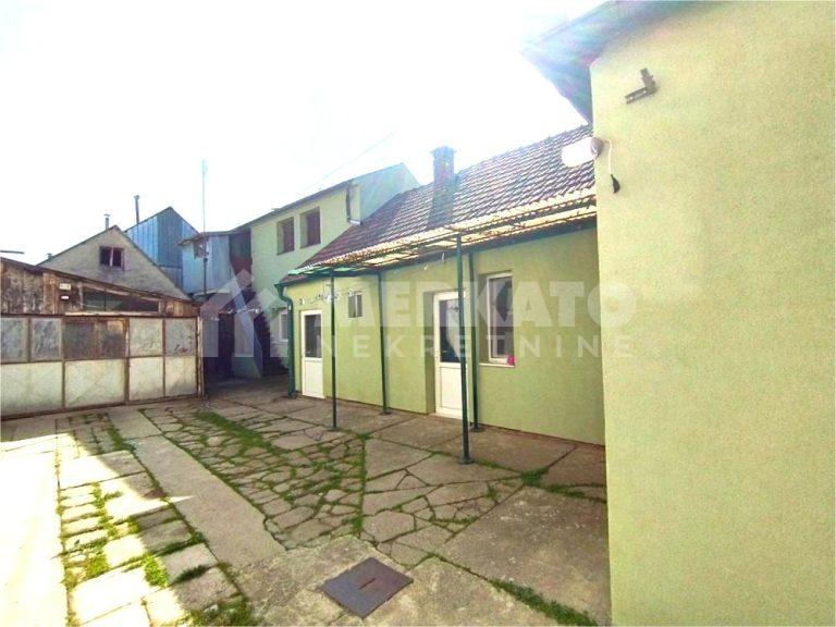 Kuća sa ulice 129m2 renovirana, čvrsta gradnja sa karo tavanicom, podeljena na 2 stana: jednosoban ( ulazna prostorija u kom je smeštena mala kuhinja i trpezariski sto, soba i kupatilo) i dvosoban ( predsoblje, kuhinja, trpezarija i dnevni boravak otvorenog tipa, spavaća soba, kupatilo i ostava.)