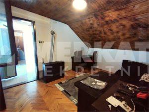 Kuća u dvorištu P+PK 120m2, jednosoban stan u prizemlju (predsoblje, kuhinja s trpezarijom, soba i kupatilo) a na potkrovlju predsoblje, 2 sobe i kupatilo.
