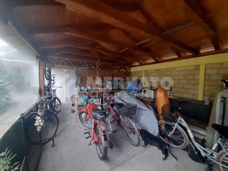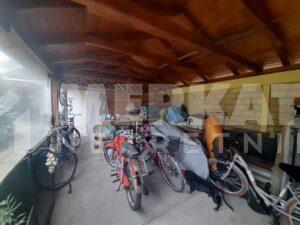 U dnu dvorišta se nalaze dve garaže ( 40m2) i nadstrešnica (30m2).