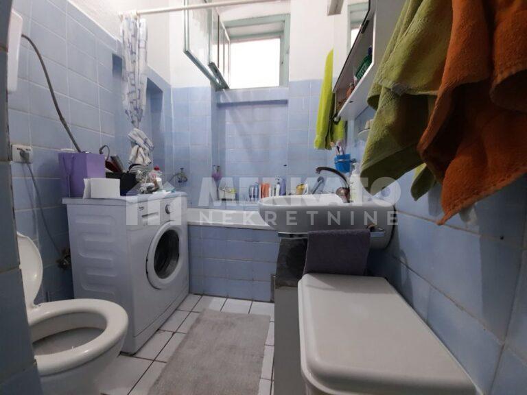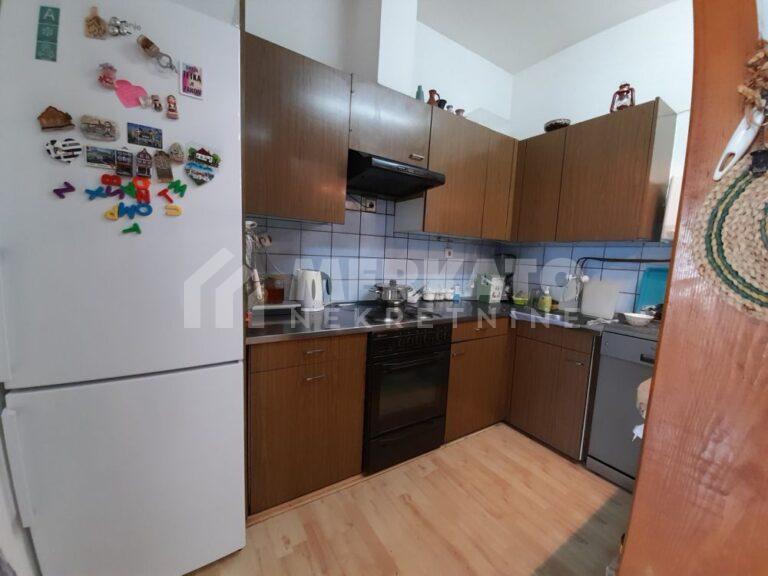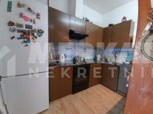 Sastoji se od predsoblja, velike dnevne sobe sa trpezarijom i kuhinjom, 3 spavaće sobe, 2 kupatila i male terase. Stanu pripada i podrumski prostor od oko 15m2.